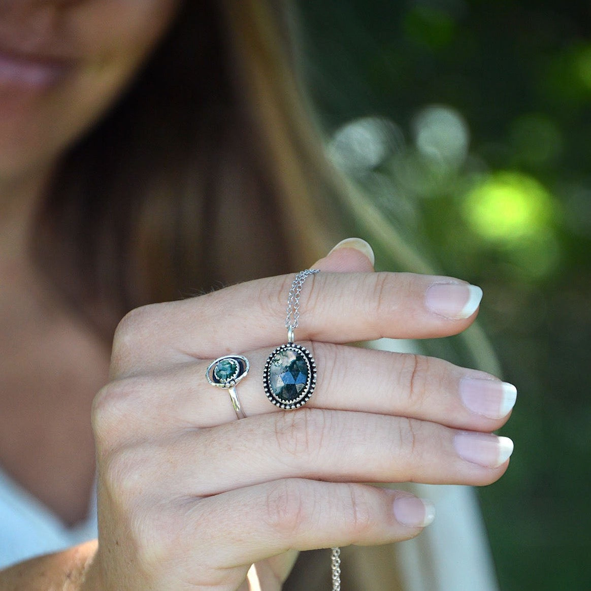 They're finally back! I use only the prettiest moss agates for this pendant, so they took me a while to find. A little bit egg-shaped this time—slightly different, but honestly? I’m in love with them.